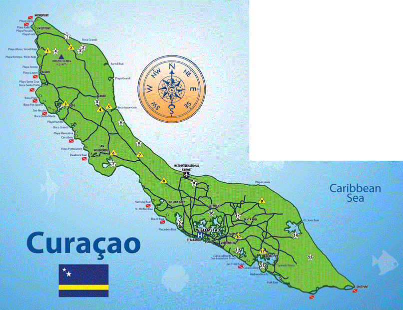 Curaçao est connue pour ses récifs de corail, utilisé pour la plongée. Les plages sur la côte sud contiennent de nombreux spots de plongée populaire. Une caractéristique que Curaçao est une île qui attire les spécialiste de la plongée sous marine .
