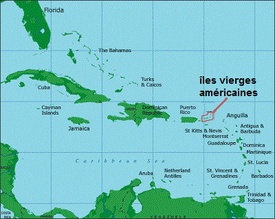 Les îles Vierges américaines sont entre la mer des Caraïbes et l’océan Atlantique, à environ 64 km à l’est de Porto Rico et immédiatement à l’ouest des îles Vierges britanniques. Le territoire est constitué de quatre îles principales: