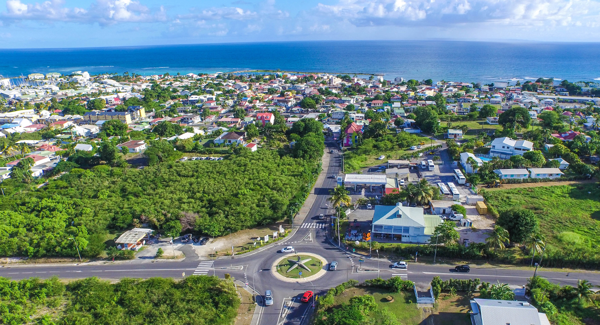 Vue aérienne de la ville de saint François en Guadeloupe.