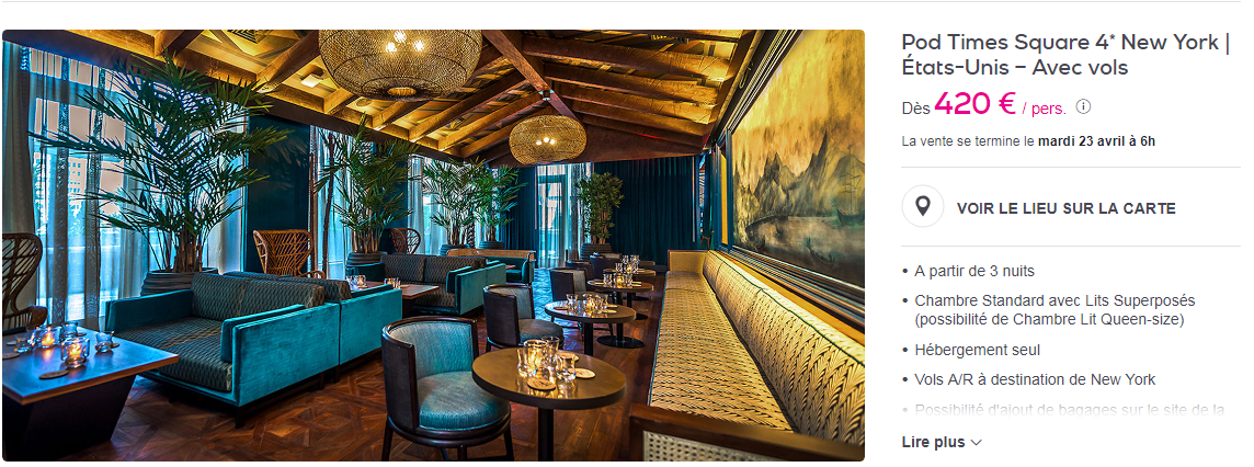 Veepee le spécialiste des ventes privées et voyages privés propose une promo à destination de New-York . A votre disposition un séjour avec vol et hôtel New York City tout inclus ,dans un établissement 4 étoiles proche de Times Square.