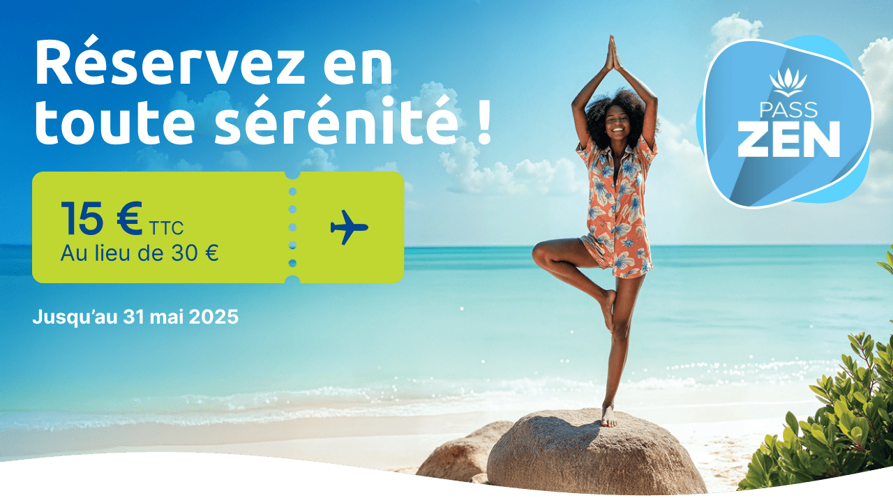 Ne laissez pas passer cette chance de combiner le plaisir d’un voyage vers des destinations de rêve avec la tranquillité d’esprit qu’offre le Pass Zen. Cette offre étant valable jusqu’au 31 mai 2025, c’est le moment idéal pour réserver vos prochains vols avec Air Caraïbes et profiter pleinement de cette promotion exceptionnelle.
